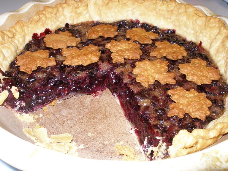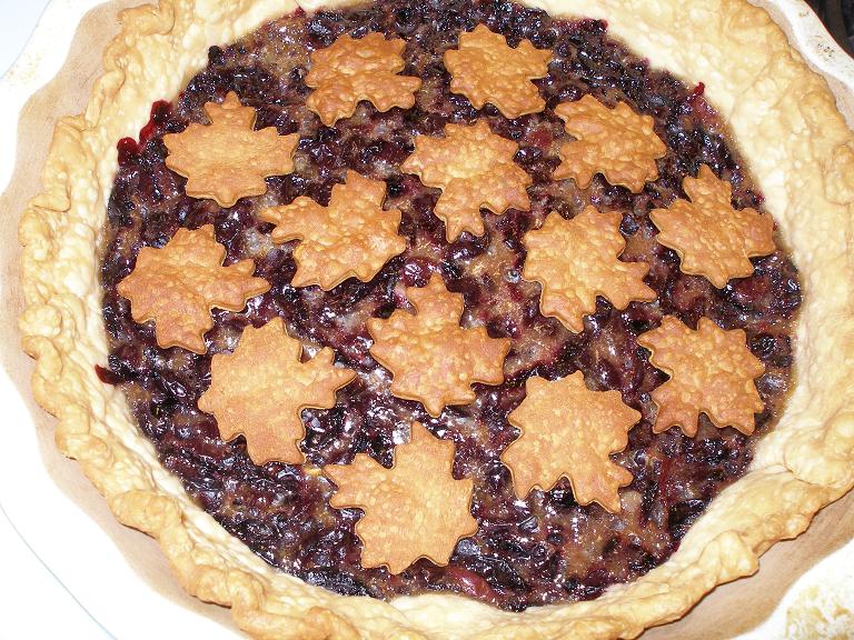 Yum!  Earlier this week Rachel shared some delicious home-grown concord grapes with us (be sure to scroll down to see the picture).  They were so sweet and good, I just had to try making this pie with them.  I didn’t have a 4″ grape-leaf cookie cutter as the recipe calls for, so I used many leaves from a small cookie cutter that I had instead.  I only baked them 15 minutes, but they still turned out a little browner then I had intended.