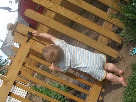 It’s made from cedar, and because we built it so long ago, I can’t remember the cost at all. But I do know that it was WAY less expensive then anything we could have bought pre-fab at the store. And it was built to last. Here’s a picture of the gate from May last year.