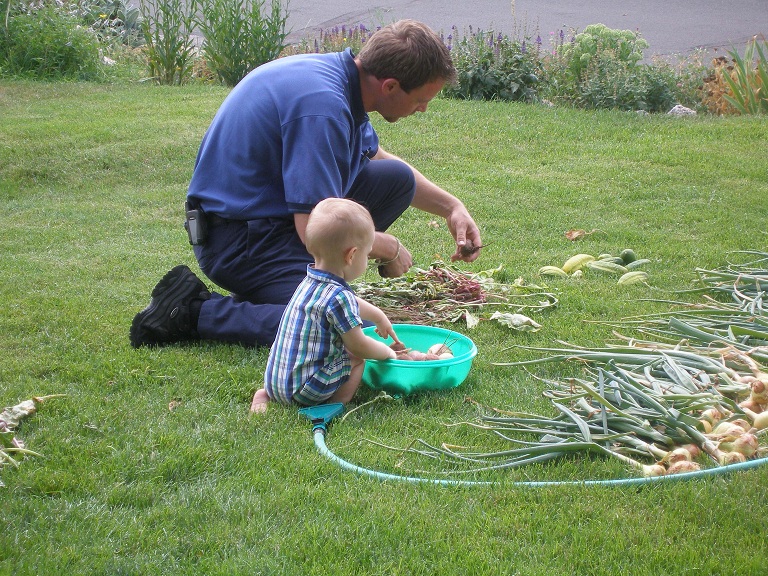 Harvest something – eggs, turnips, onions, cucumbers, zucchini, beets, tomatoes, green seedless grapes from the neighbor across the alley from us!
