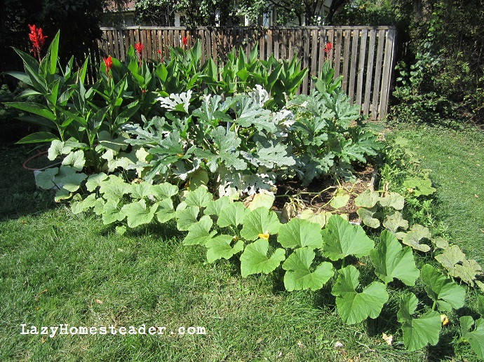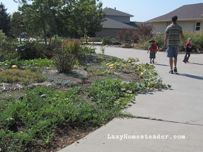 Lori in Aurora was growing a great variety of vegetables. In the circle in her front drive way she had many varieties of winter squash, summer squash, cucumbers and melons. She was very generous and gave us two good sized spaghetti squash to take home.